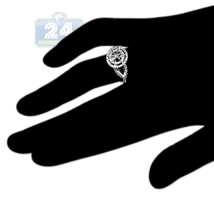 14K White Gold 0.49 ct Diamond Halo Engagement Ring Setting