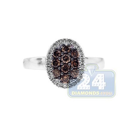 14K White Gold 0.50 ct Mixed Brown Diamond Womens Oval Ring