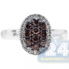 Add something fancy to your daily look! Our women's ring is expertly designed in cool 14k white gold with highly polished shiny finish, and features ten pieces of brown round cut diamonds in the center that are stylishly surrounded by shimmering icy white round shaped brilliants. What a truly fascinating mix and game of colors!