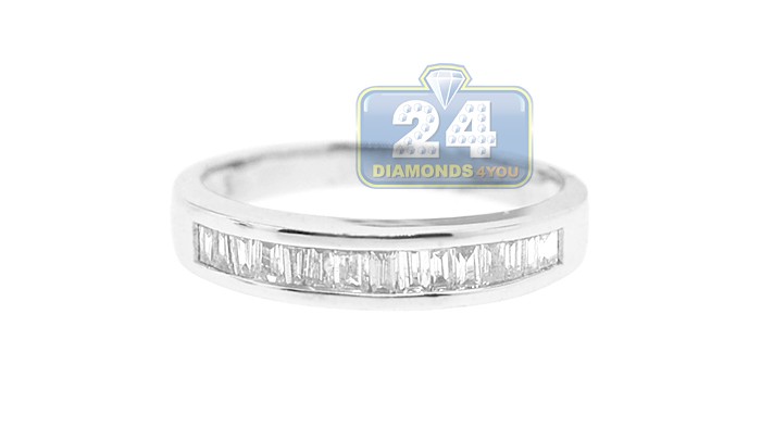 14K White Gold Baguette Channel Set Diamond Womens Band Ring