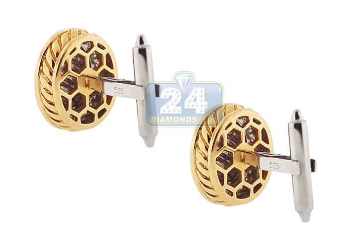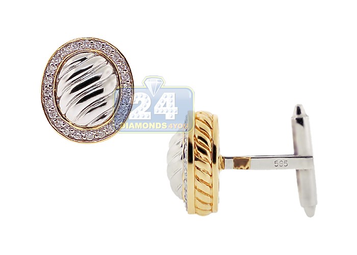 14K Two Tone Gold 0.50 ct Diamond Decorated Oval Mens Cuff Links