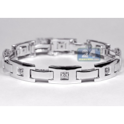14K White Gold 0.51 ct Diamond Slim Link Mens Bracelet 8 1/4 Inch