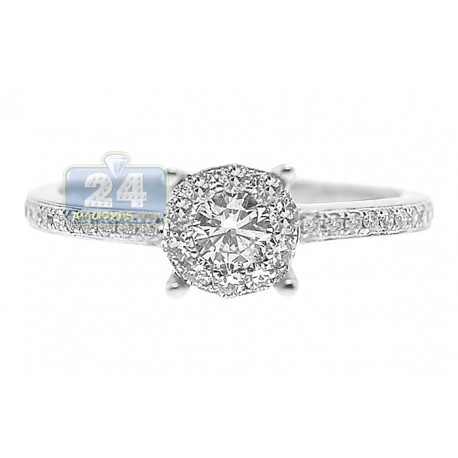 14K White Gold 0.53 ct Pave Diamond Classic Engagement Ring