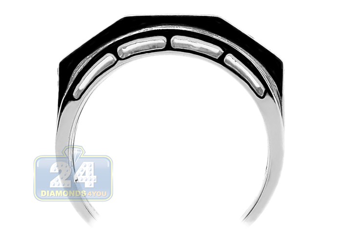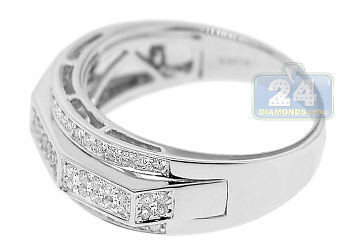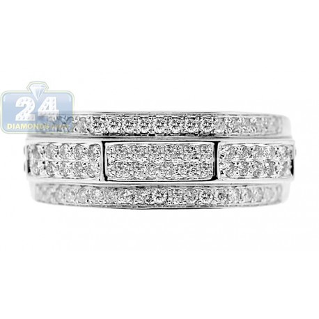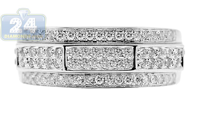 14K White Gold 0.63 ct Multirow Diamond Mens Embossed Ring