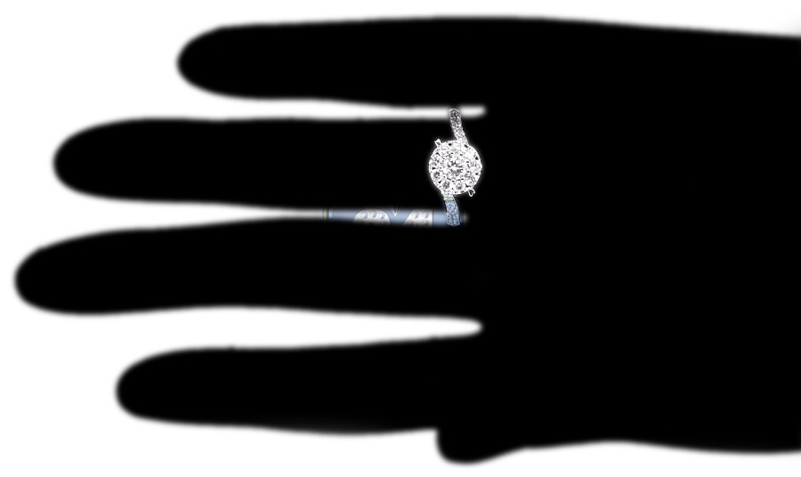 Ask the jewel of your life to marry you with this gorgeous diamond engagement ring! It's made of lustrous 14k white gold, finished with high polish, and wisely encrusted with 0.65 carat of genuine round cut diamonds to make a special illusion effect. This diamond engagement ring will fit your queen!