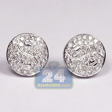 These amazing Yin Yang stud earrings are ready to complete any look with perfect panache! Artfully produced from cool 14 karat white gold, they have highly polished shimmering finish. Our women's round earrings are paved with 76 icy white round brilliant-cut real diamonds of 0.65 carat. They have width of 10 mm, and secured by comfortable screw backs. Not only for special occasions, these diamond stud earrings will light up any look!