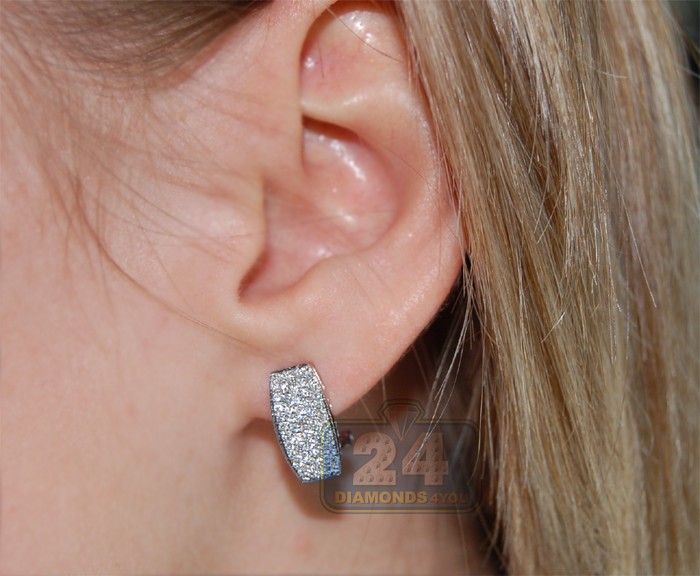 14K White Gold 0.66 ct Diamond Womens Huggie Earrings