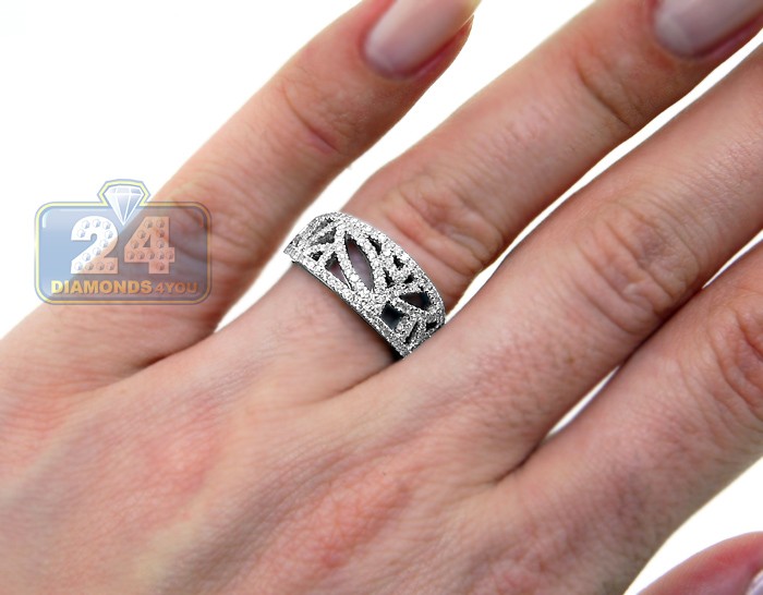 14K White Gold 0.66 ct Diamond Vintage Openwork Band Ring