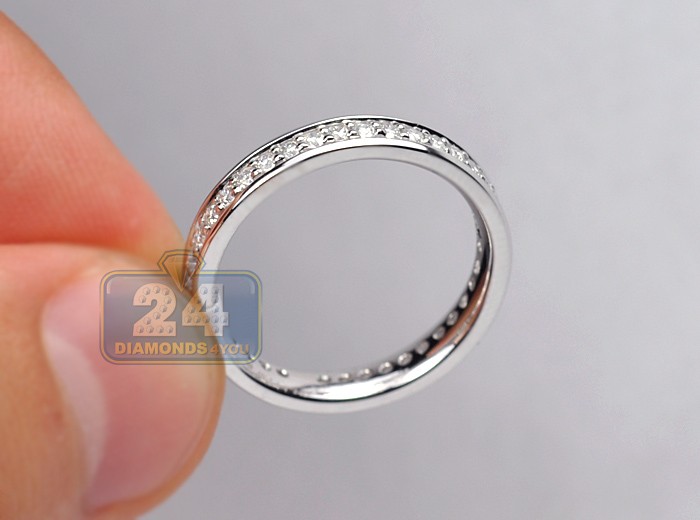 14K White Gold 0.69 ct One Row Diamond Womens Eternity Ring