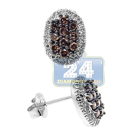 14K White Gold 0.70 ct Cognac Diamond Womens Stud Earrings