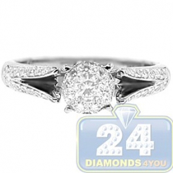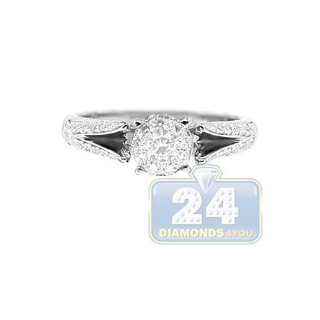 14K White Gold 0.72 ct Diamond Cluster Vintage Engagement Ring