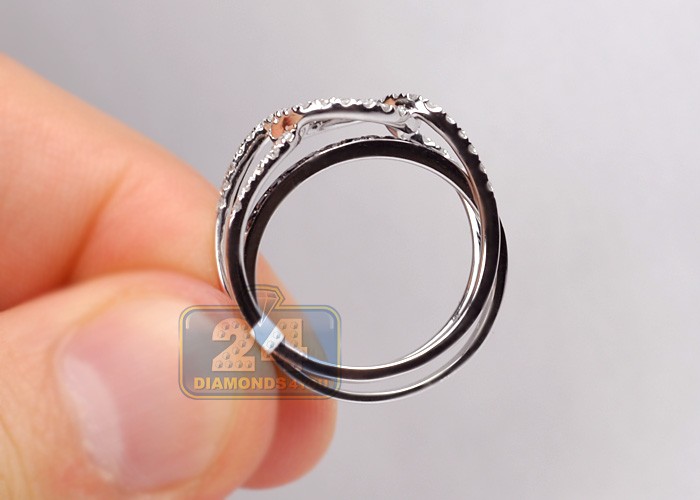 14K White Gold 0.74 ct Black Diamond Womens Double Ring Set