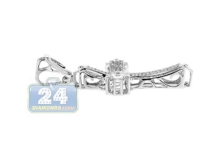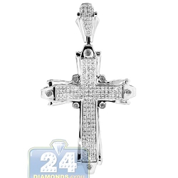 14K White Gold 0.74 ct Diamond Religious Cross Mens Pendant