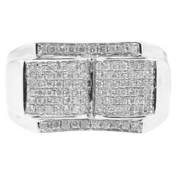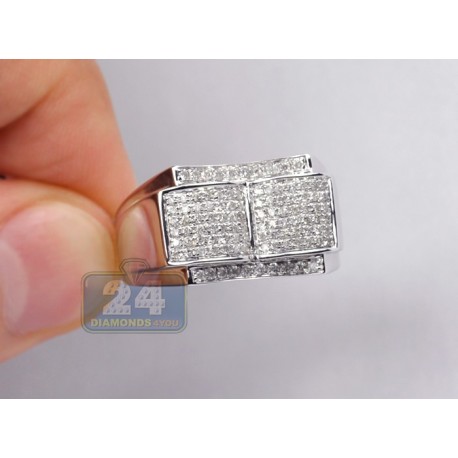 No doubt, this signet for men is a timeless design to last forever! It features a stylish design of two embossed squares on a rectangular shaped setting. The ring is masterly handmade of cool 14k white gold with perfectly polished finish, and skillfully encrusted with 0.74 carat of icy white round cut diamonds. All brilliants are totally eye clean and sparkling, with G-H color and SI1-SI2 clarity grades.