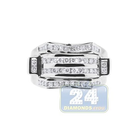 14K White Gold 0.75 ct Round Cut Diamond Mens Rectangle Ring