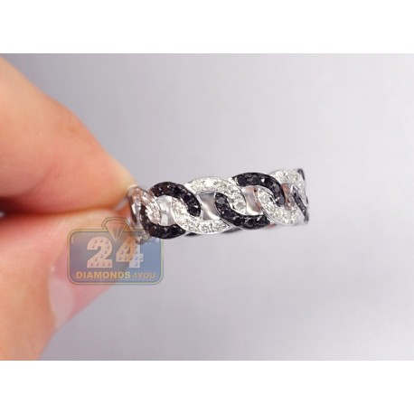 What a beautiful expression of your love for diamonds! This women's ring features a detailed woven design masterly handmade of lustrous 14k white gold with highly polished finish. The band is gorgeously accented with a mix of natural white and black round cut diamonds totaling 0.77 carat. Each white stone is eye clean and sparkling, with SI1-SI2 clarity and G-H color grades. Simply a stunning addition to your daily look!