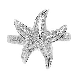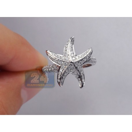 14K White Gold 0.77 ct Diamond Womens Sea Star Ring