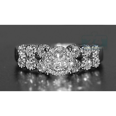 14K White Gold 0.78 ct Two Row Diamond Engagement Ring
