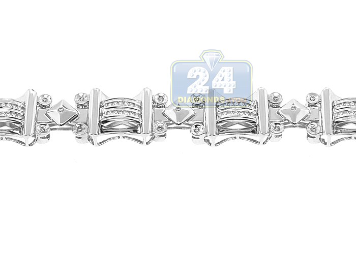14K White Gold 0.78 ct Diamond Link Mens Bracelet 8.5 Inches
