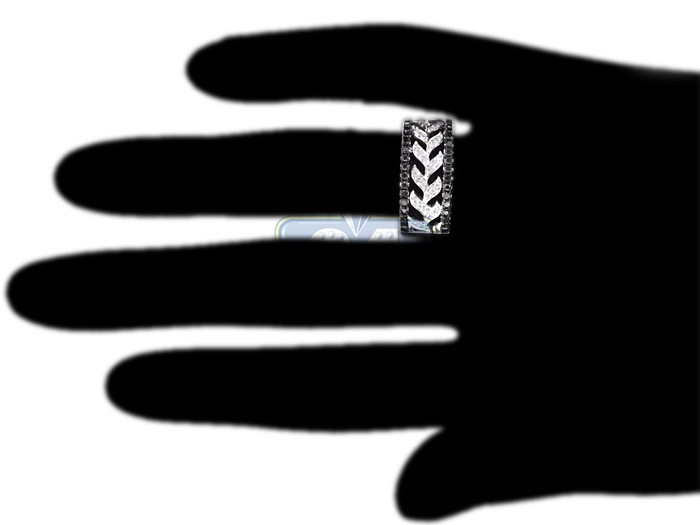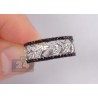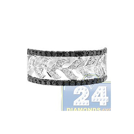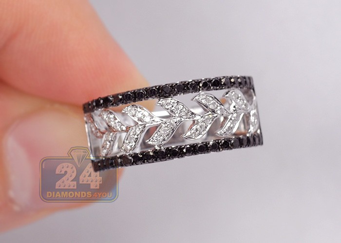 You are looking at a timeless treasure! Our vintage styled band showcases a gorgeous floral inspired openwork pattern that is artfully crafted from lustrous 14k white gold with perfectly polished shiny finish. Amazing leafs are skillfully encrusted with icy white round cut diamonds weighting approximately 0.79 carat in total while the borders of the jewel are gorgeously accented with two rows of genuine black brilliants creating an eye catching contrast!