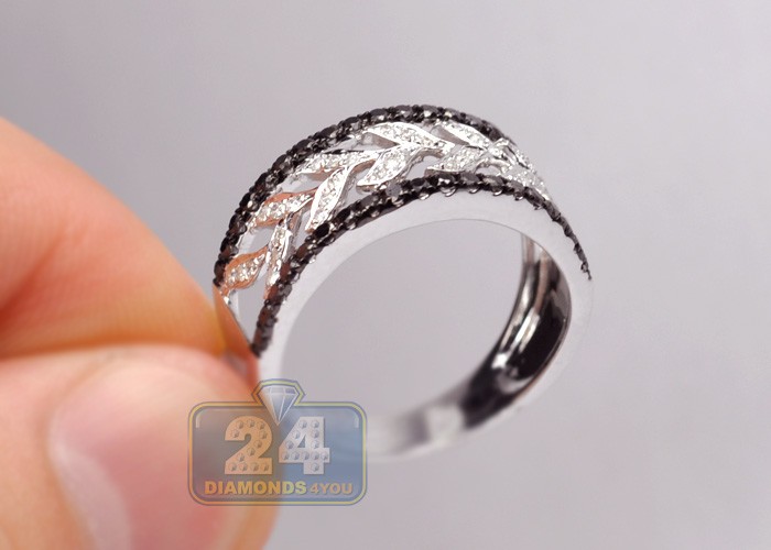 14K White Gold 0.79 ct Mixed Black Diamond Leaf Womens Ring