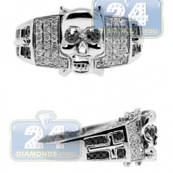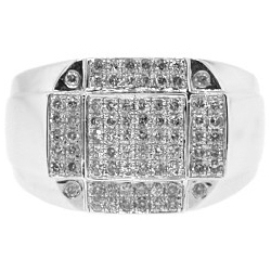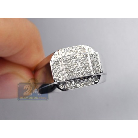 14K White Gold 0.82 ct Diamond Mens Signet Ring