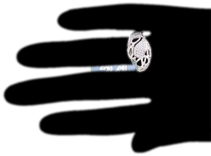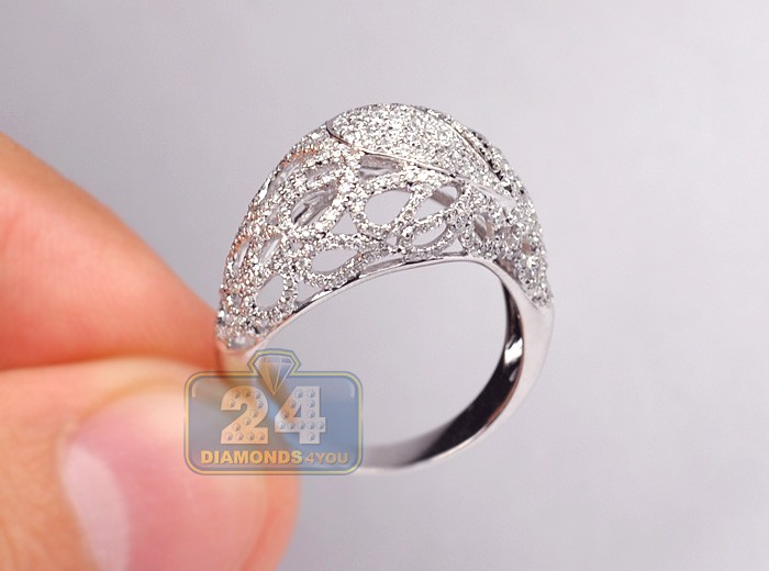This impressive dome features a vintage inspired openwork design! The ring is masterly handmade of cool 14k white gold with highly polished finish, and perfectly accented with genuine 0.84 carat of white round cut diamonds. These brilliants are absolutely eye clean and sparkling, with SI1-SI2 clarity and G-H color. What an incredible statement jewelry piece!