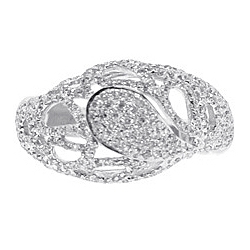 14K White Gold 0.84 ct Diamond Vintage Openwork Dome Ring
