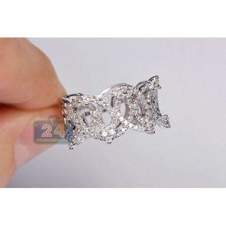 Amazingly encrusted with genuine icy white diamonds weighting 0.85 carat in total, this vintage styled band features an openwork design! It is skillfully handmade of cool 14k white gold with highly polished finish. Which this fascinating jewelry piece you will sparkle like a star without emptying your bank account!