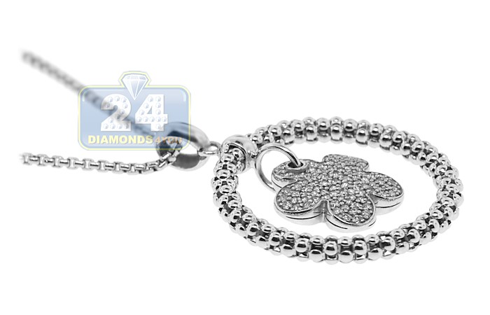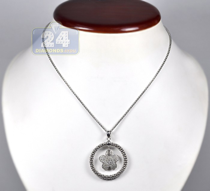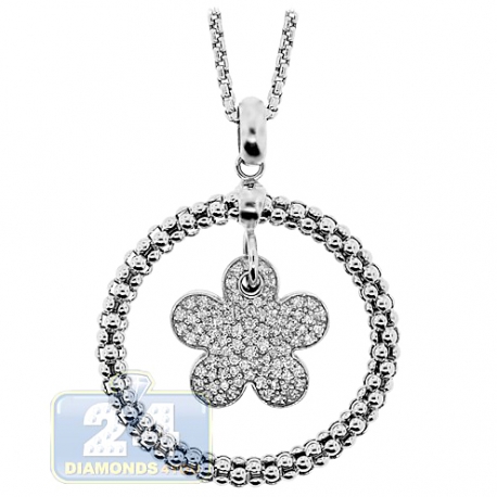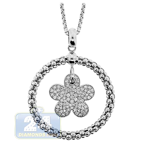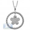 14K White Gold 0.86 ct Diamond Flower Circle Pendant Necklace