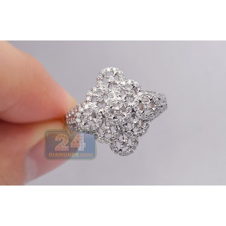 14K White Gold 0.88 ct Diamond Vintage Flower Womens Ring
