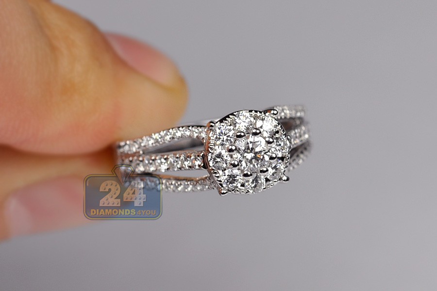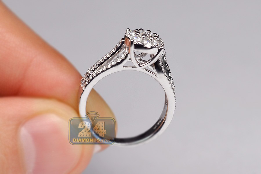 Make her feel like a princess when you give her this vintage inspired engagement ring! The jewel is professionally handmade of lustrous 14k white gold with highly polished finish, and beautifully accented with 68 pieces of icy white round cut diamonds totaling 0.90 carat. Each stones features SI1-SI2 clarity with G-H color. Show your lasting love with such a special bridal piece!