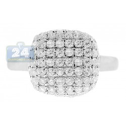14K White Gold 0.95 ct Diamond Womens Square Puff Ring
