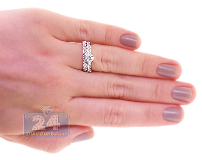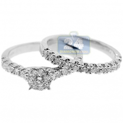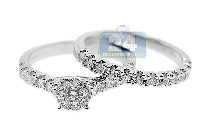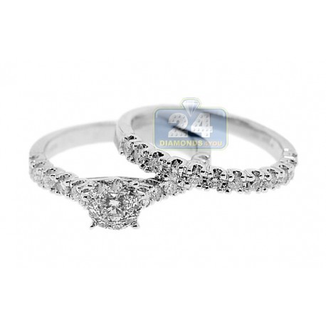 14K White Gold 1 ct Diamond Engagement Wedding Rings Set