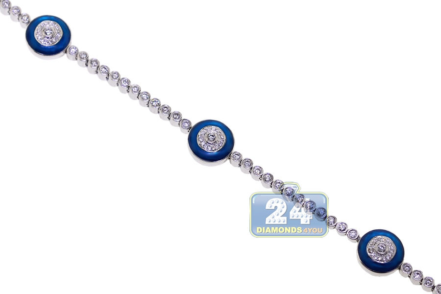 Every religion has its own symbol! One of these symbols we can find in almost every culture and faith for thousands of years... it is the figure of eye! Turkish evil eye bead bracelets are the most common talisman to stop the evil eye. Evil eye bead gives happiness to the friends and the beloved ones. Beautiful "Evil Eye" bracelet is lovely manufactured from cool 14k white gold, and encrusted with 1.00 carat of icy white round brilliant-cut diamonds. Evil eye links feature elegant blue enamel accents. Add some modern spiritual personality to your attire!