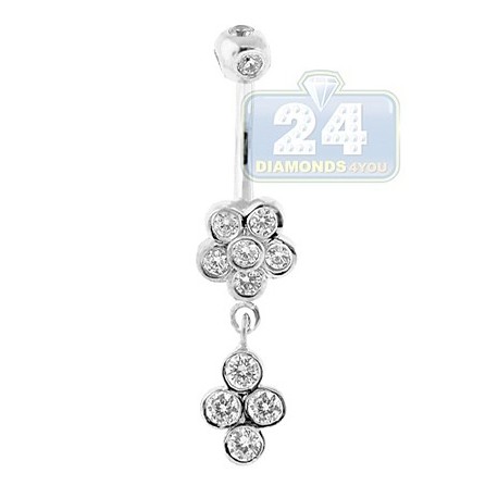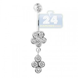 14K White Gold 1.00 ct Diamond Flower Womens Dangle Belly Ring