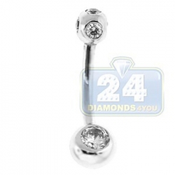 This feminine & fancy belly ring is triply delightful! Gorgeous, little flower holds dangling four round cut diamonds. The delicate top ball features glittering round cut brilliants as well. Set in lustrous 14k white gold polished to the perfection with each diamond sparkles with a real fire! This incomparable piece is the perfect accent to wear with any style or outfit. Includes a detailed certificate/appraisal.