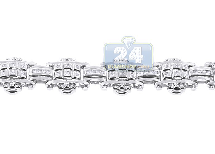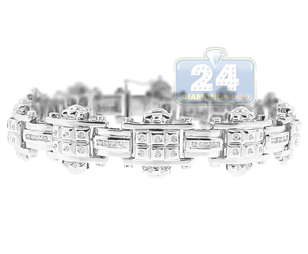 This elegant diamond bracelet will make any man feel like absolute royalty! It's professionally crafted in cool 14 karat white gold, and precisely polished for very shimmering look. Our men's wrist bracelet features icy white round brilliant-cut real diamonds totaling 1.00 carat (SI1-SI2 clarity, G-H color). It also has length of 8.5 inches and width of 17 mm. Show off your sense of style with this stunning piece!
