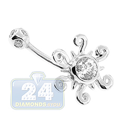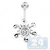 14K White Gold 1.00 ct Diamond Sun Womens Belly Ring