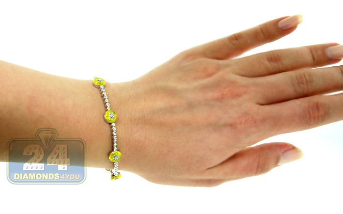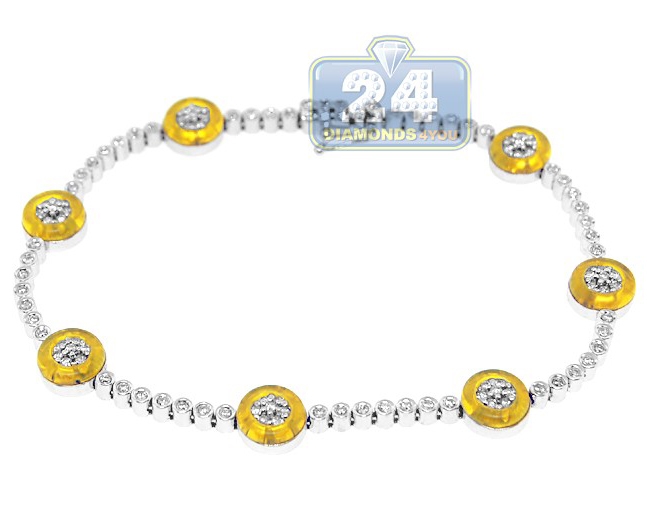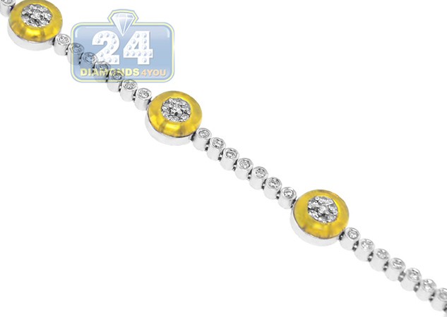 14K White Gold 1.00 ct Diamond Yellow Evil Eye Womens Bracelet