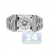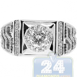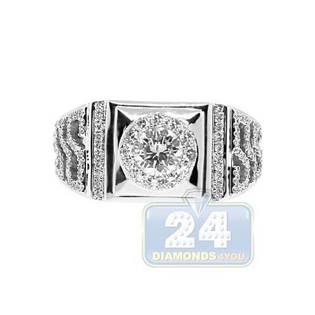 14K White Gold 1.02 ct Diamond Cluster Mens Signet Ring