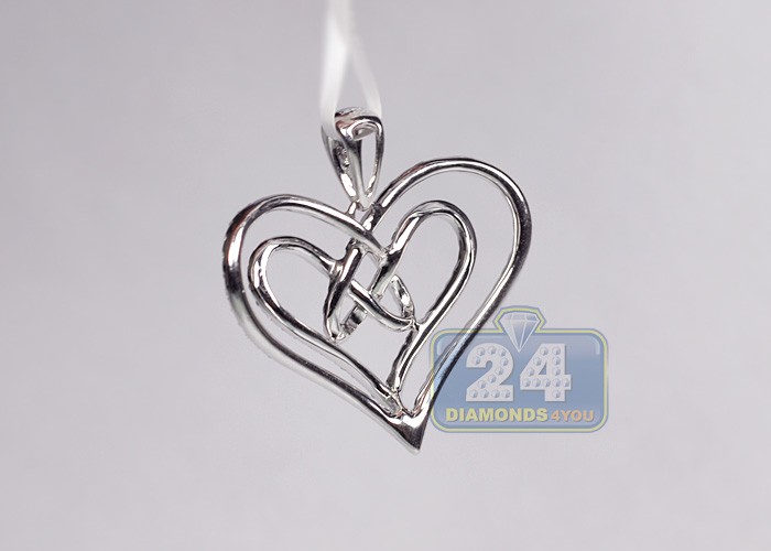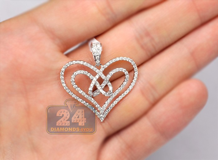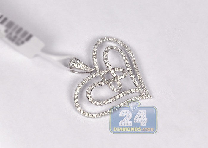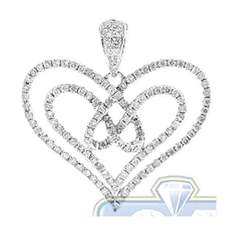 Show the world your romantic side wearing this diamond heart pendant! Professionally crafted in cool 14 karat white gold, it features highly polished smooth finish. The layered heart pendant is encrusted with lustrous white round brilliant-cut natural diamonds totaling 1.04 carat (SI1-SI2 clarity, G-H color). Our women's diamond pendant features 30 mm in dangling height and 30 mm in width. The open heart pendant is sure to ignite engaging conversation!