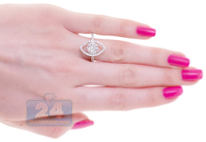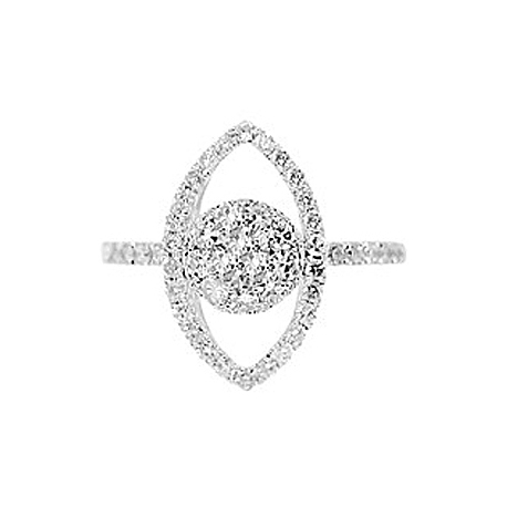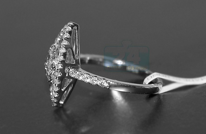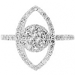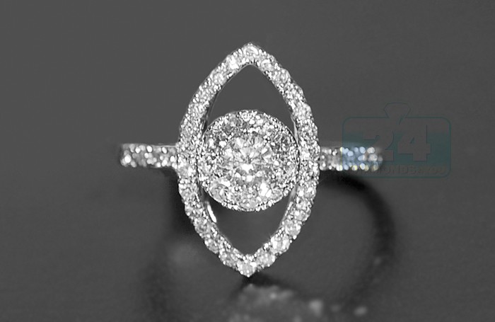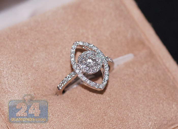 All magic moments start with this unique 14k white gold engagement ring! An exquisite marquise-shape crown holds a stunning round cut diamond surrounded by a row of smaller sparkling diamonds in the center. Stunning 14k white gold setting is accented with a row of icy white diamonds on each side that makes the ring absolutely beautiful and feminine.