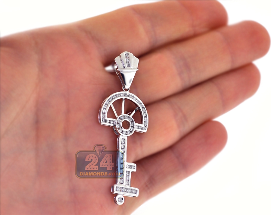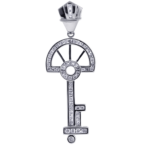 14K White Gold 1.05 ct Channel Set Diamond Key Womens Pendant