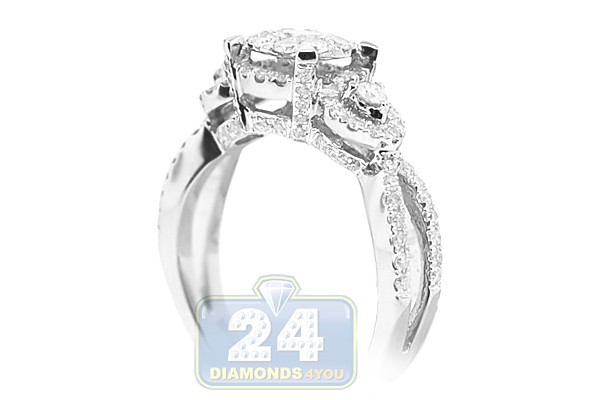 14K White Gold 1.08 ct Diamond Cluster Engagement Ring