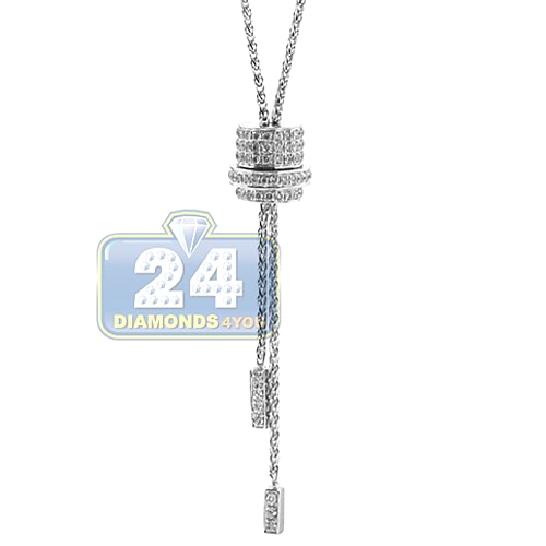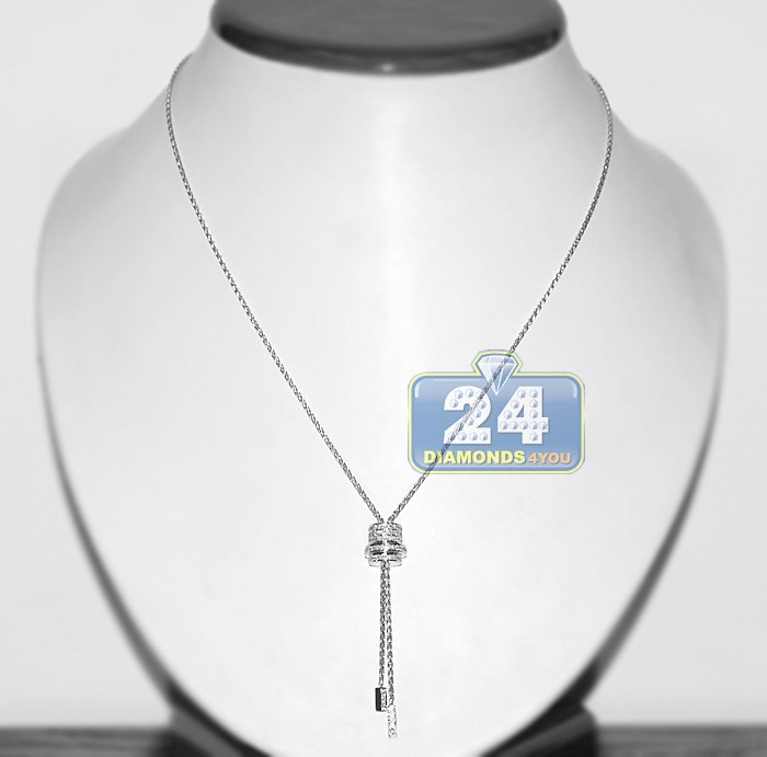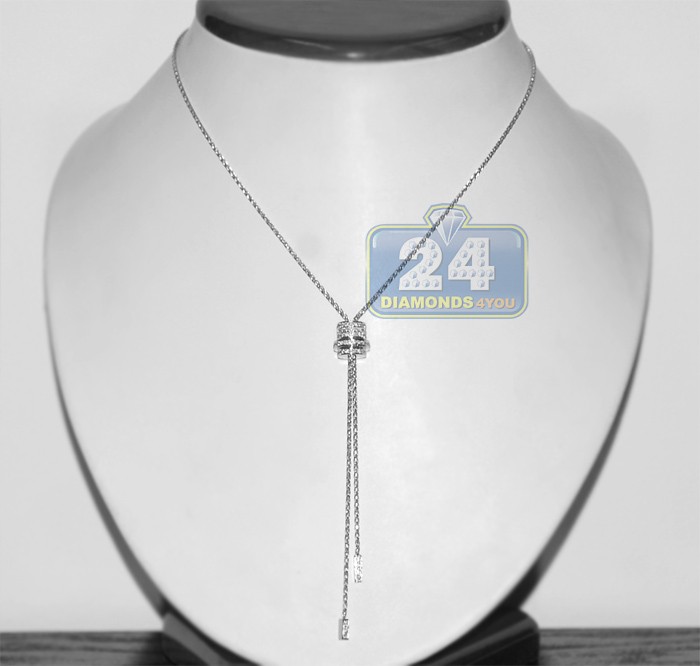14K White Gold 1.09 ct Diamond Adjustable Slider Lariat Necklace