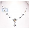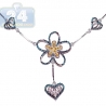 14K White Gold 1.10 ct Diamond Heart Flower Womens Necklace