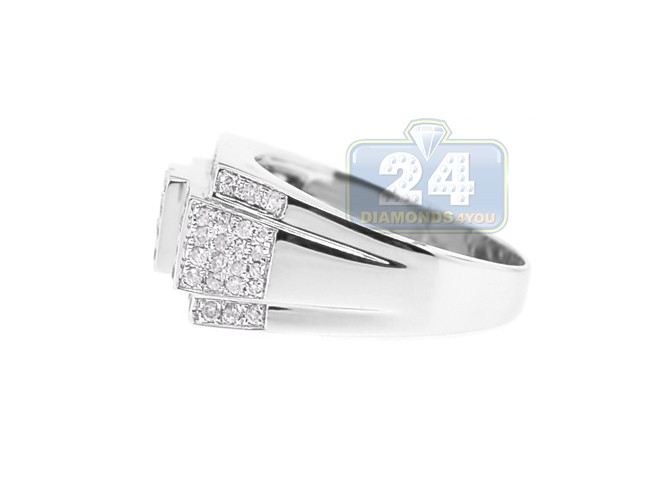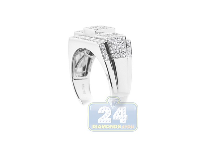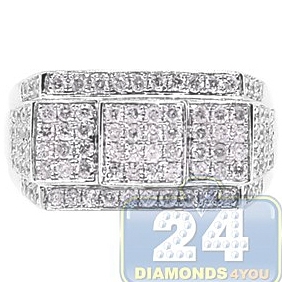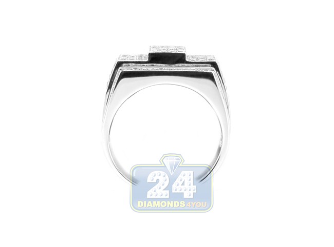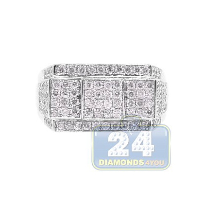14K White Gold 1.10 ct Diamond Mens Rectangle Signet Ring