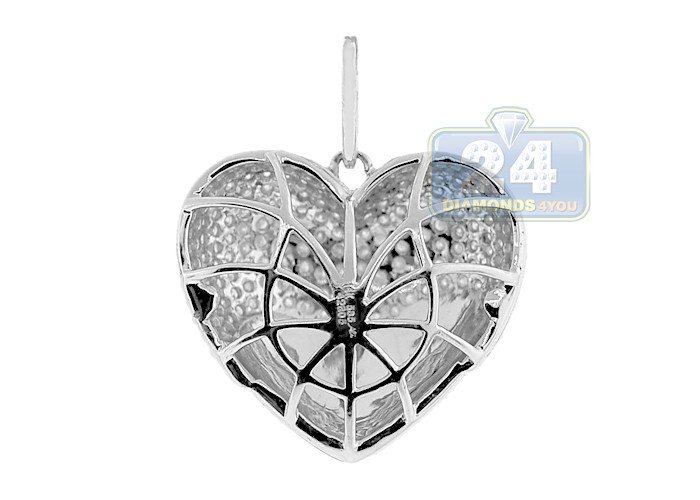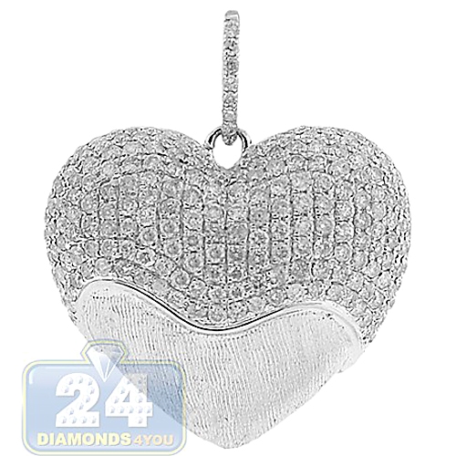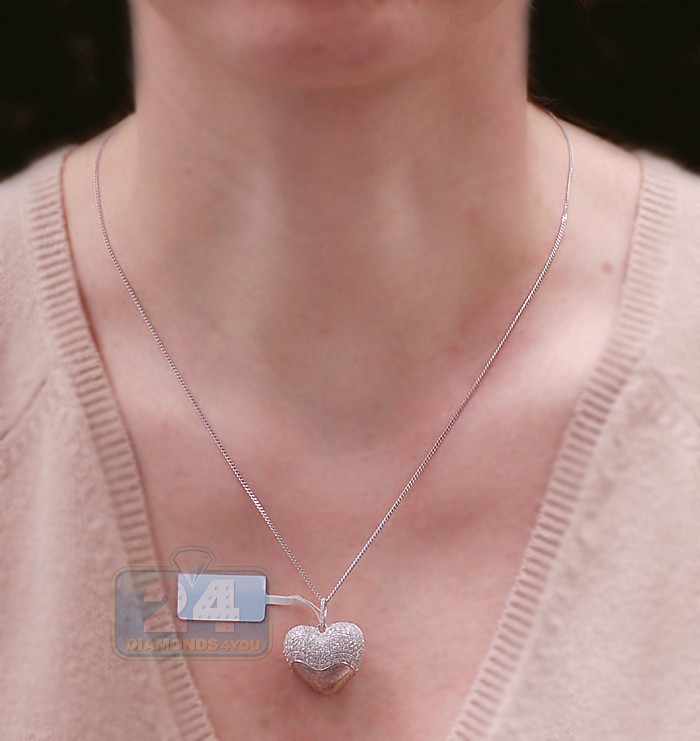 14K White Gold 1.10 ct Diamond Puff Heart Womens Pendant