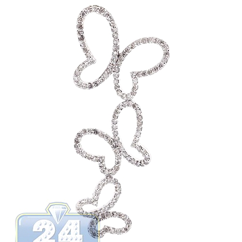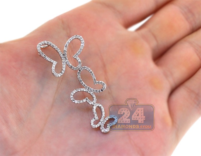 14K White Gold 1.10 ct Diamond Triple Butterfly Womens Pendant